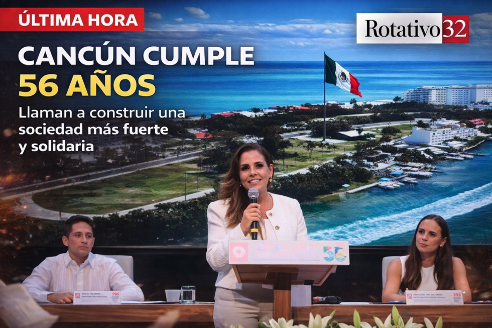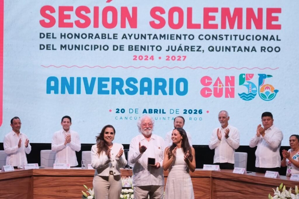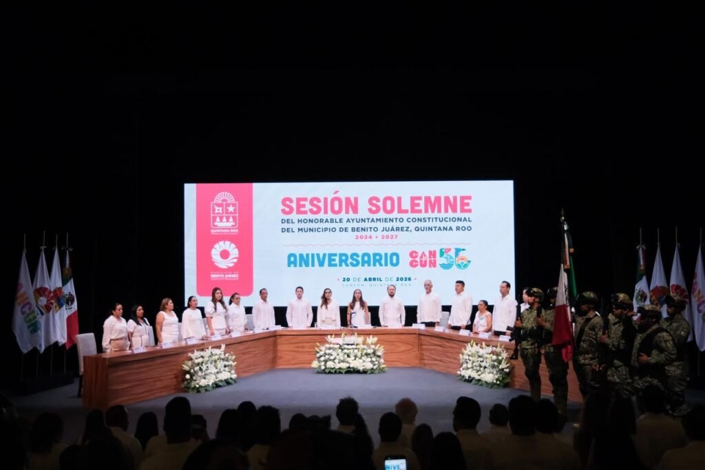 Cancún.– En el marco del 56 aniversario de Cancún, autoridades estatales y municipales hicieron un llamado a construir una sociedad más fuerte, solidaria y con sentido humano, durante la Sesión Solemne de Cabildo celebrada en el Teatro de la Ciudad.