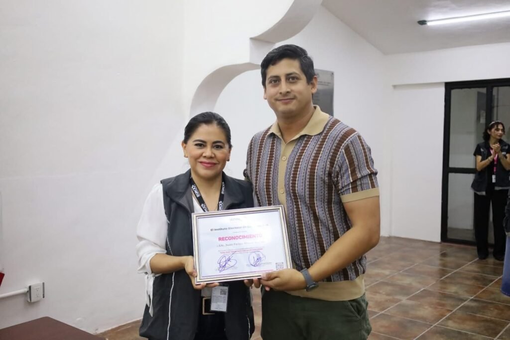En el certamen, el primer lugar fue para Jaime Miguel Aguilar Torres, con el video “La participación como un valor ciudadano para construir una Democracia Saludable”, en el que resaltó la importancia de involucrar a las y los jóvenes en la toma de decisiones.
