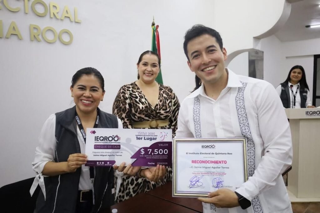 Chetumal, Quintana Roo, 18 de marzo.– Con el objetivo de fomentar la participación de las juventudes en la vida democrática, el Instituto Electoral de Quintana Roo (IEQROO) llevó a cabo la ceremonia de premiación del concurso de TikTok 2025 “Exprésate con valor Challenge”.