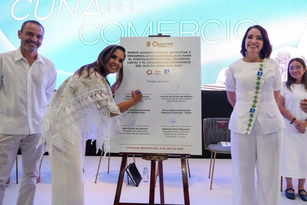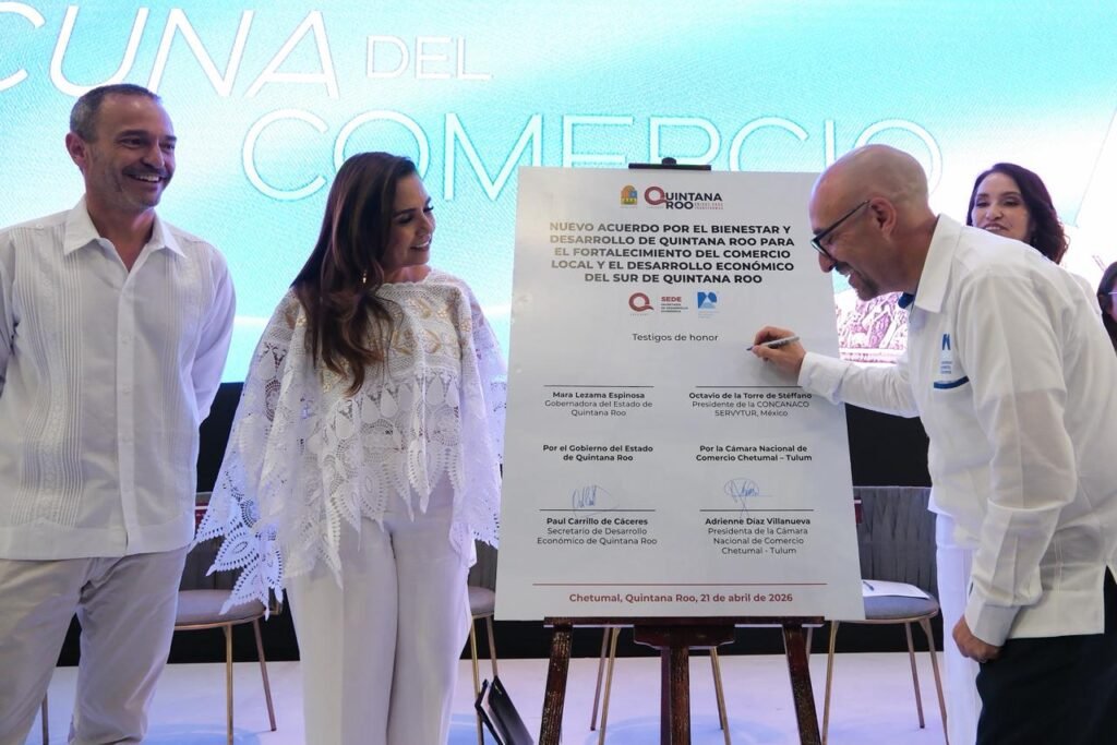 El evento también sirvió como marco para la firma del Nuevo Acuerdo por el Bienestar y el Desarrollo de Quintana Roo, enfocado en fortalecer el comercio local y detonar el crecimiento económico en la región sur.